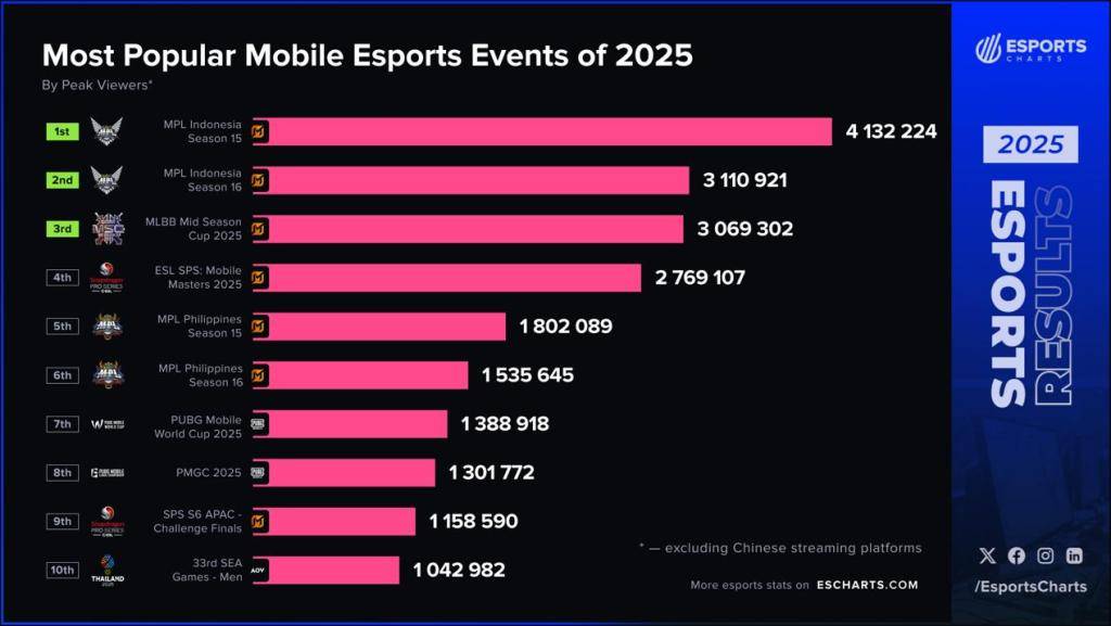 其赛事影响力同样领跑全球,据Esports Charts数据,MLBB职业联赛已成为首个总观赛时长突破十亿小时的电竞联赛,2024年以4.75亿小时观赛时长登顶全球移动电竞赛事收视榜首,同时蝉联电竞世界杯最受欢迎项目,并成功入选2026年亚运会的正式比赛项目。