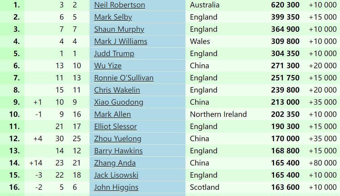 其次是世界排名的显著提升。张安达的排名从第23位上升至第20位。如果能在决赛中夺冠,他的积分将超越斯佳辉,重新杀回世界前16。这看似微小的进退,却关系到种子席位、直接入围大赛正赛的机会,以及整个赛季赛事规划的主动权,意义重大。